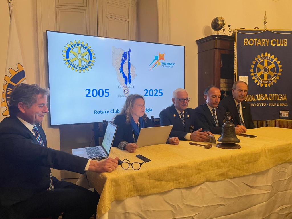 Dopo la proiezione di un video celebrativo della storia del club, la cerimonia si è conclusa con l’intervento del Governatore Giuseppe Pitari, che ha espresso il suo apprezzamento per il lavoro svolto dal Rotary Club Siracusa Ortigia nel corso dei suoi venti anni di attività.